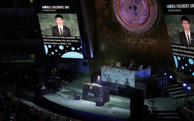 纽约时间11月20日,王源受到邀出席联合国大会高级别会议,同时将会在大会中发言, 表达对儿童受教育权利的看法。大会现场,王源打黑色领带,身穿修身西装,很是精神,沉稳帅气。