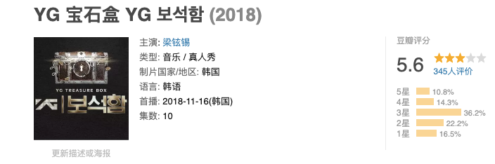 韩国的YG公司作为三大经纪公司之一,也曾推出过《YG宝石盒》来选拔YG的新男团,但很可惜最后原定出道组Treasure13销声匿迹,出道失败。这档节目目前在豆瓣上的评分也不理想,节目的制作十分粗糙,直接导致观众对节目中的偶像没有足够的了解,练习生们没能通过节目积累稳固的人气。