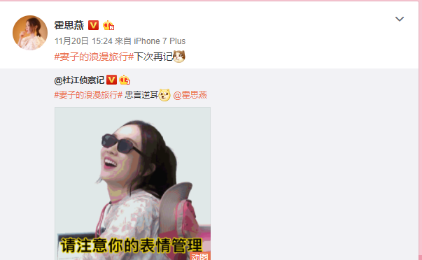 昨天下午杜江发微博称忠言逆耳,还配了个霍思燕的表情包。