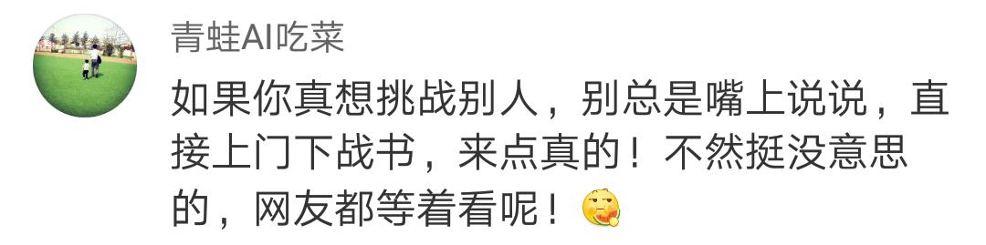 对此,网友们纷纷给飞龙留言抨击道:“有病快去看医生吧,天天发些狗不搭八微博”、“年青人熄熄火,友谊第一”、“别恶心人啦,黑红你也火不了的”、“如果你真想挑战别人,别总是嘴上说说,直接上门下战书,来点真的!不然挺没意思的,网友都等着看呢”、“飞龙,看你在网上吹得那么火,要不就去先找个次级拳手打一场,证明你是有本事的,我也很期待你能有一次大显伸手的机会,但光在这吹是没人信服得了你的,赶紧用实际行动证明自己”、“你活不了几天了”。