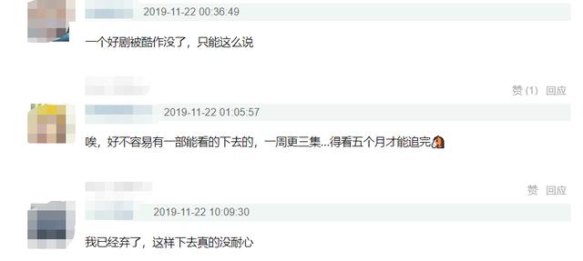 不少网友因此直接放弃追剧,并感慨道一部好剧就被平台播出给作没了。毕竟按照这部剧60集的长剧情来算,可能要5个月才能更新完,这样也太难等了,难怪网友会开撕起平台。