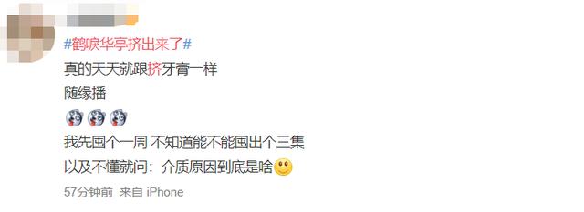 但没想到,本来是一部备受大家期待的剧却因为更新的原因功亏一篑,不少网友都发出追剧太难了的心声,#鹤唳华亭挤出来了#这个话题更是频繁登上热搜。