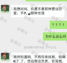 甚至直接问到"你是不是那种要谈恋爱不......的那种女孩"。