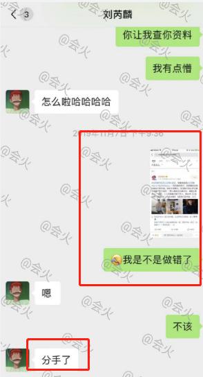 当女粉丝表示看到刘芮麟与代斯是恋人关系的消息时,刘芮麟还直言"分手了"并说自己不想聊与前女友分手的事儿。