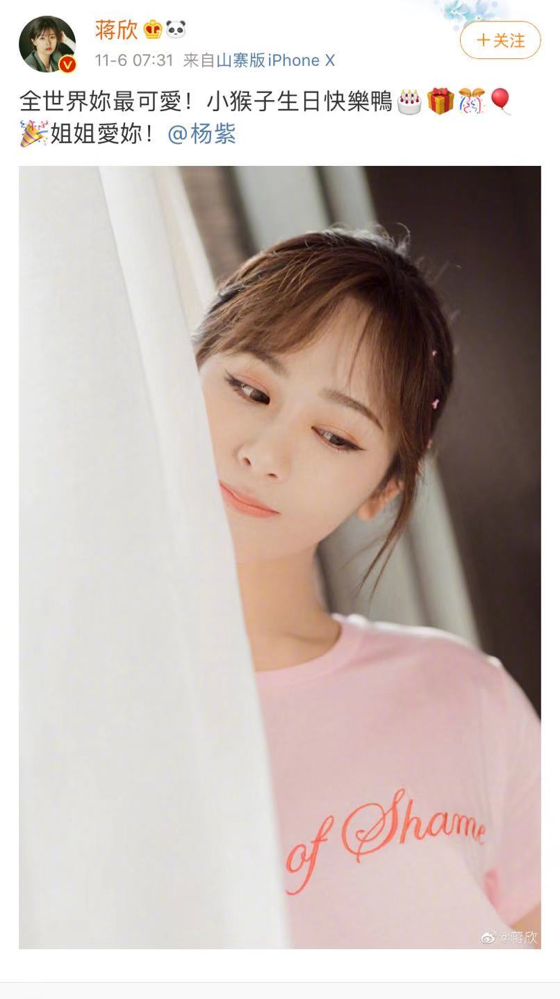 欢乐颂二美乔欣和蒋欣都为杨紫送上祝福,她们应该从2017年都没有间断过给小猴子送祝福,这感情也是么么哒,好姐妹一生情。