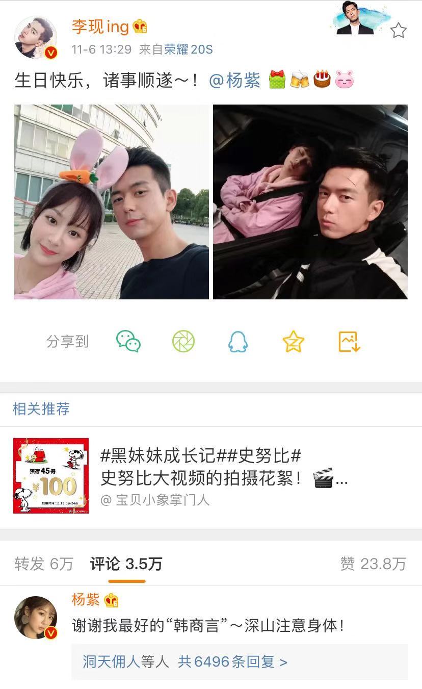 邓伦和杨紫同龄,都是92年生人,邓伦发的微博时间是11月6日10:21,这个不知道是不是巧合,杨紫11月6日生日,而邓伦生日是10月21日,这波操作几个意思,看来纯属巧合,他们几乎很少互动。