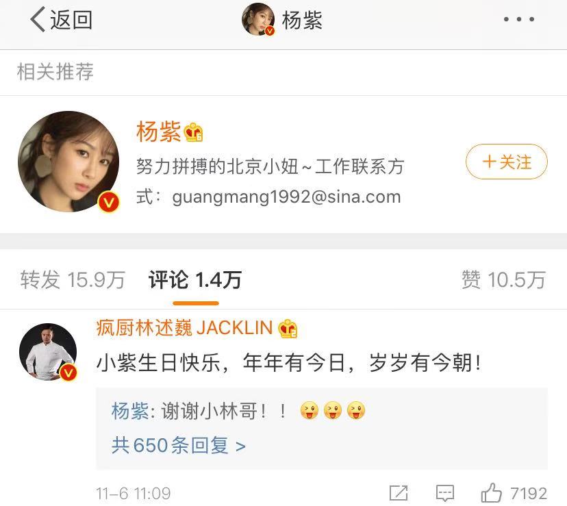 林大厨也为杨紫送上祝福,不过可能他是圈外人,不知道会不会一起聚会吃大餐。