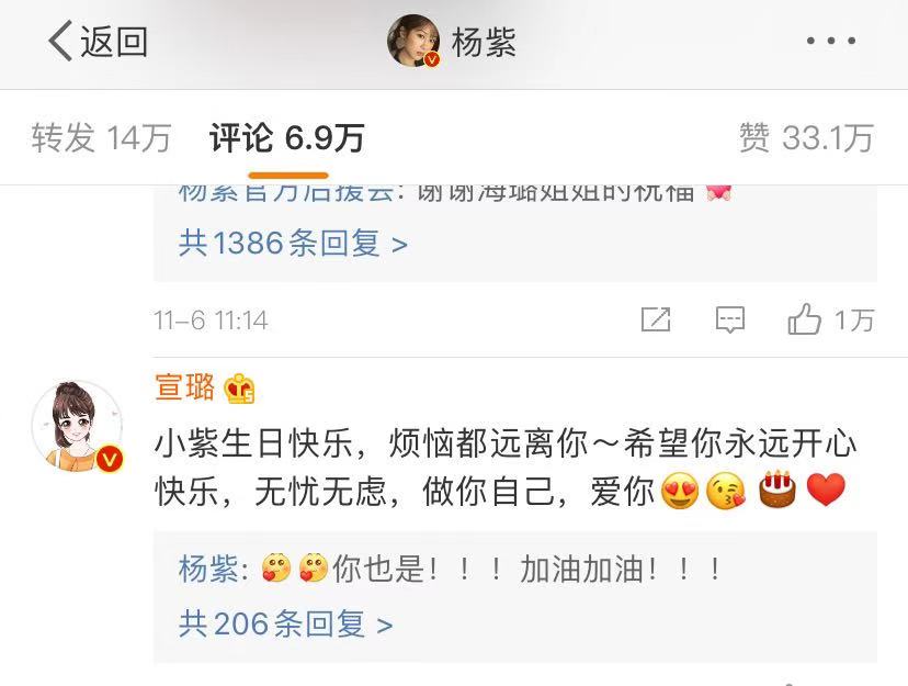 师姐宣璐和杨紫合作演出过,四年前合作过《大秧歌》,看来感情也是很难忘,宣璐和杨紫都在无锡为肖战庆生,娱乐圈还真是个圈。