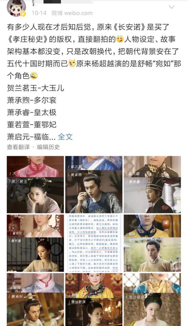 而新剧《长安诺》就翻拍自《孝庄秘史》,虽然剧情是差不多的,但是这个人物设定的朝代是属于架空的,小编说实话也知道会改变成如何,但是呢,对于改编这个,小编一直是保持怀疑态度。
