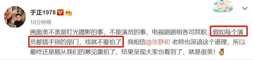 节目播出后,于正还发博表示“假如每个演员都插手别的部门,戏就不要拍了”。