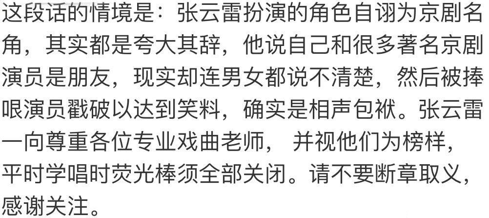 具体内容是说张云雷在一次表演中调侃张火丁。