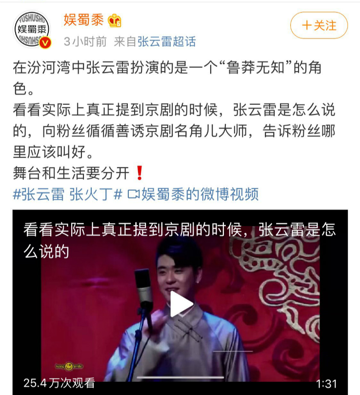 刚一看热搜,还挺惊喜的。以为张云雷是不是要和张火丁老师合作了。毕竟,张云雷在京剧上也有一定的造诣,能和著名表演艺术家张火丁合作,显然是一种荣幸。