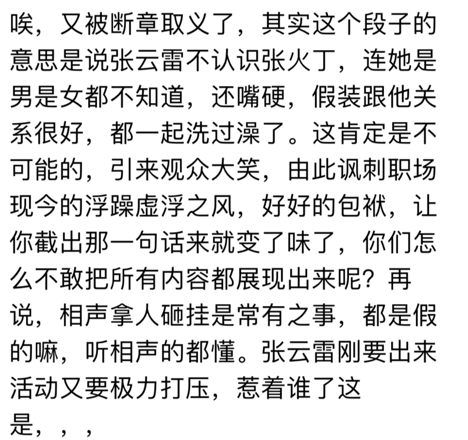 面对网友的愤怒质疑,张云雷的粉丝依旧四个字回怼:断章取义。