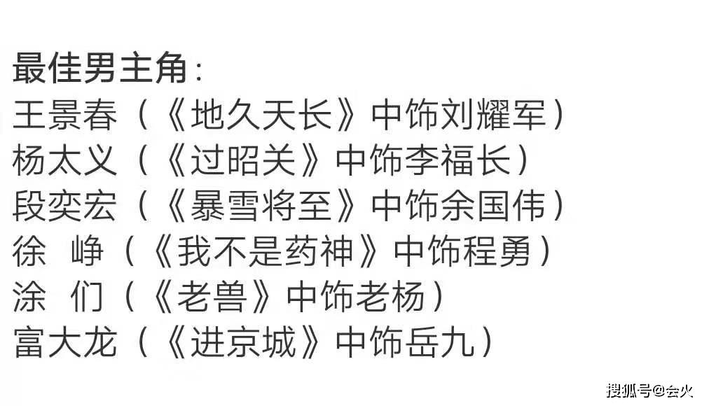 目前的大众热度还不错,演技也早早受到了认可,那么,当王景春对上富大龙、涂们这样的老牌影人,他获奖的几率又有多大呢?