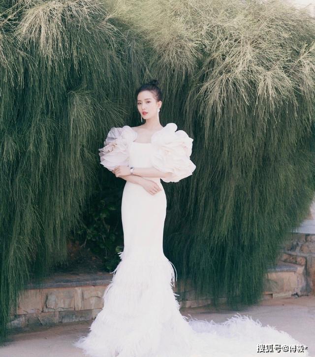 反观刘诗诗的美图,瞬间就能看得到差别了。因为穿的是羽毛长裙,所以刘诗诗的团队特地为她选择了一处带穗的植物当背景,不仅纹路相符,绿色的背景也让白裙的刘诗诗更加突出。粉丝们的关注点也全部在她本人身上,整个图片非常高大上。