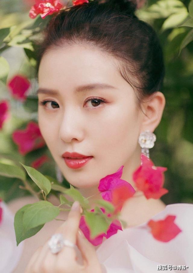 另一张刘诗诗的美照中,她将花朵贴在脸颊下方,虚实的结合下,仿佛左耳戴着一只花朵耳环一般,非常具有艺术美感。看得出来,刘诗诗的摄影团队在每一处都是用了心的,完全不像杨幂和热巴的美图显得那般凑合。