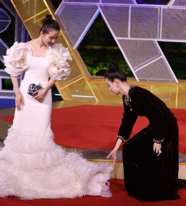 刘诗诗和倪妮同为内地85后四小花旦,虽然荧屏上很少合作,私底下交集也不多,但是两人关系非常好,在昨晚的红毯上,由于刘诗诗的裙摆太长,期间倪妮频频蹲下身子为她整理裙摆,可谓相当暖心。
