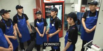 再到披萨店兼职,还未开工职员们就开始的加油打气操。