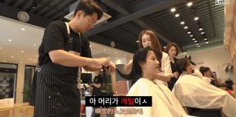当理发店院长要求张圣圭洗头力度再大一点时,圣圭直接转向店员问,或许有锤子吗?