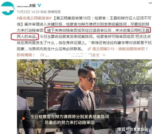 这一系列的证词,指向了高云翔在本案之中的动机其实是已经明确,所以他与王晶将有可能再一次的面临坐牢的风险。法官不相信王晶说法,陪审团将决定两人命运。