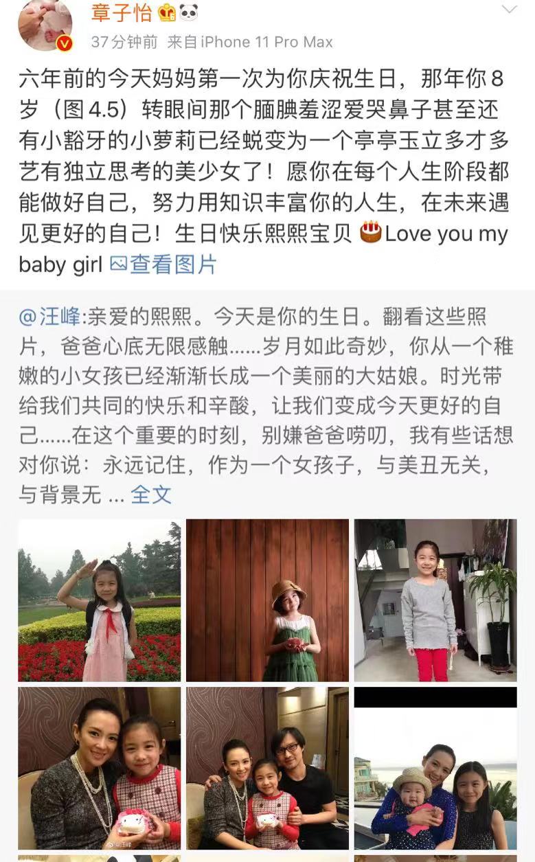 汪峰发文为女儿汪曼熙庆生,随后章子怡进行了转发并晒出庆生照片。汪曼熙是汪峰和模特葛荟婕的女儿,今年已经14岁,一直汪峰的母亲将其带大,在汪峰和章子怡的求婚礼上,汪曼熙喊章子怡妈妈,章子怡对汪曼熙是真的好,不仅一起旅游,还带她去购买鞋子,并亲自为她试鞋,还带她参加香港电影金像奖颁奖礼等。章子怡的确是对汪曼熙视为己出,但还是被很多人舆论。