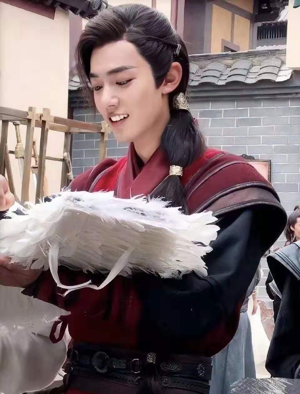 近日,有网友爆出肖战一组另类影视剧灯笼马尾造型,这个造型相信真爱粉知道出自哪部剧,照片中肖战着深红色奇装异服,发型也非常另类,但依然挡不住肖战精致的盛世美颜,有吃瓜群众笑称:“这灯笼辫子有十斤重”。