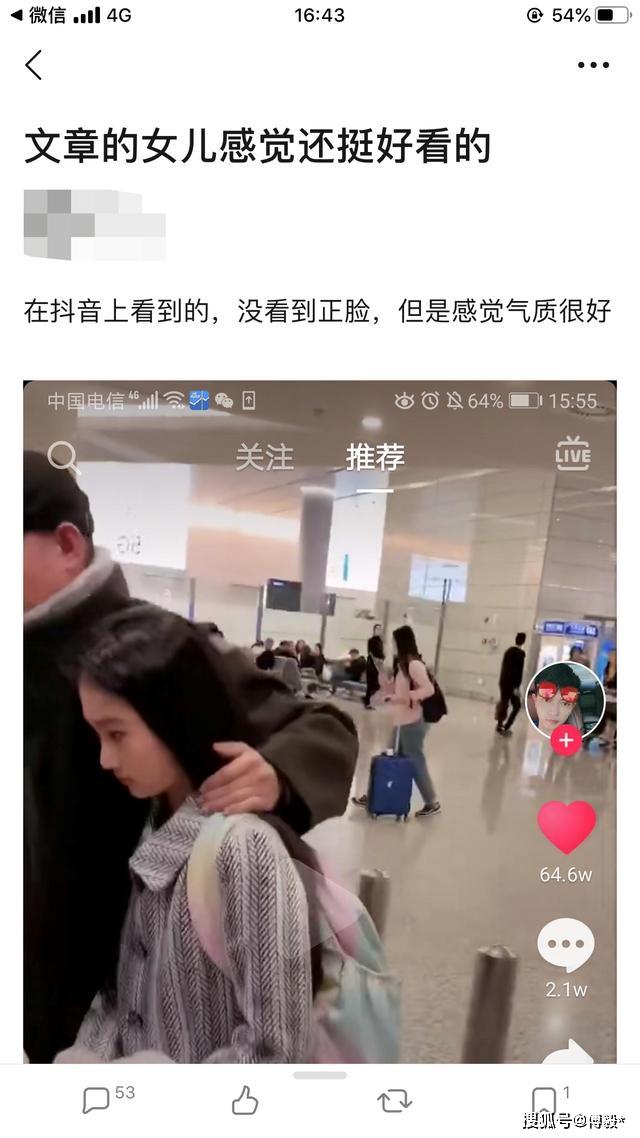 两人在机场的穿搭相当的低调,看上去就像是一对普通的父女一般。不过还是有网友认出了他们,并且拍摄了抖音视频。
