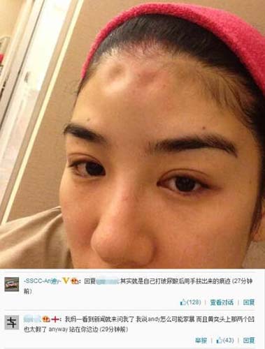 2003年12月童瑶被男友张默家暴,导致其鼻骨骨折、左眼球出血↓