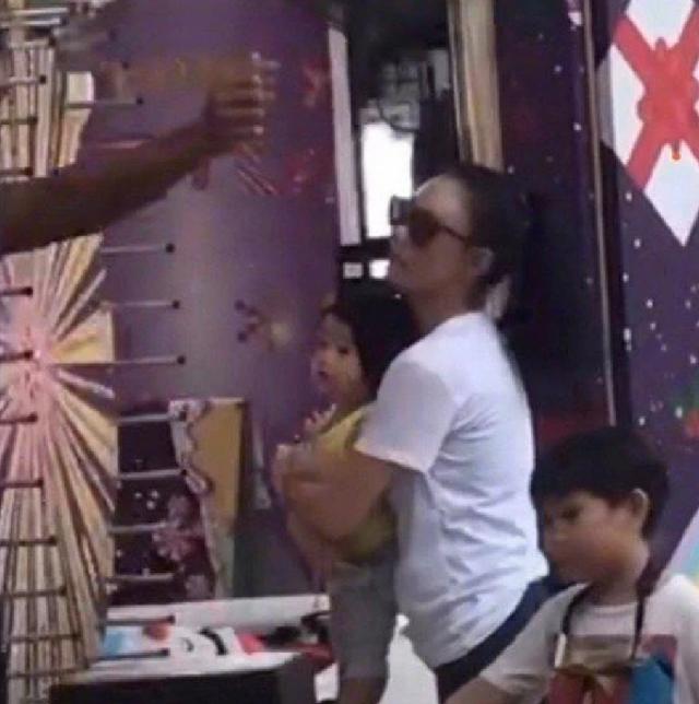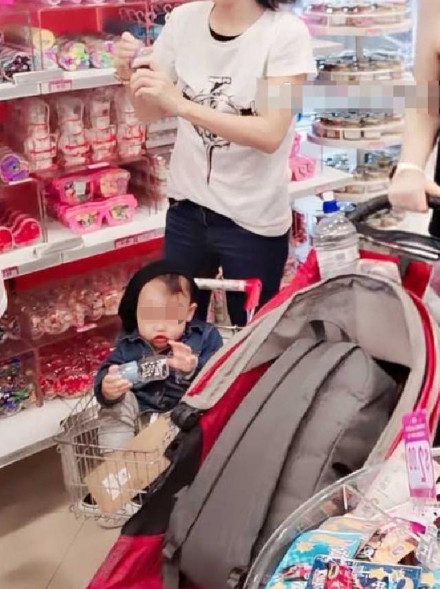 张柏芝推着购物车帮小王子选零食,而小王子当时穿着一件黑色的外套,乖巧地坐在购物车里,手里还拿着杯子自娱自乐,没想到这画面恰好被正在自拍的女网友拍到了。