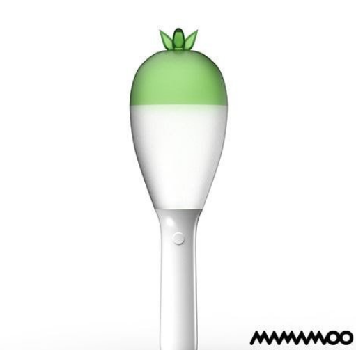 Mamamoo的应援棒是出了名的别具一格,外形就是一只圆滚滚的绿白萝卜,绿白色是木木们的应援色,小萝卜的形状拿在手上特别吸引路人的关注,关于萝卜棒的来历问题,还有一段非常有趣的故事。