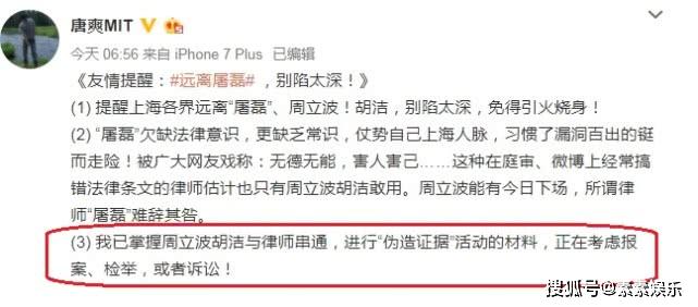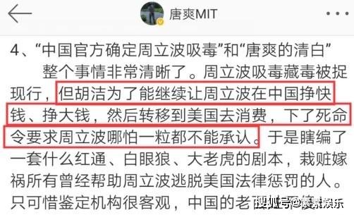 对于这一点,11月5日周立波更新发文,也算是回应了唐爽的喊话。周立波的发文用意很简单,就是“唐爽你不要颠倒是非,你等着!”