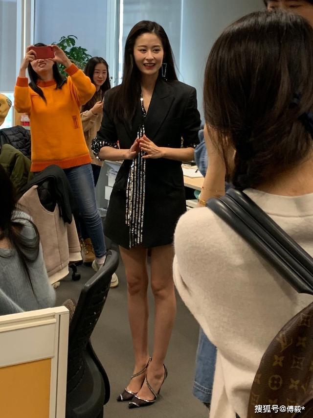 11月26日,颖儿与郑元畅为了新剧宣传来到某娱乐公司总部,共同进行扫楼活动。当日的颖儿可谓美丽至极,一身西服套装外加吊坠耳环,整个大长腿暴露在外,性感又不失知性美。一旁的员工们也是举起手机纷纷拍照,热烈欢迎颖儿的到来。