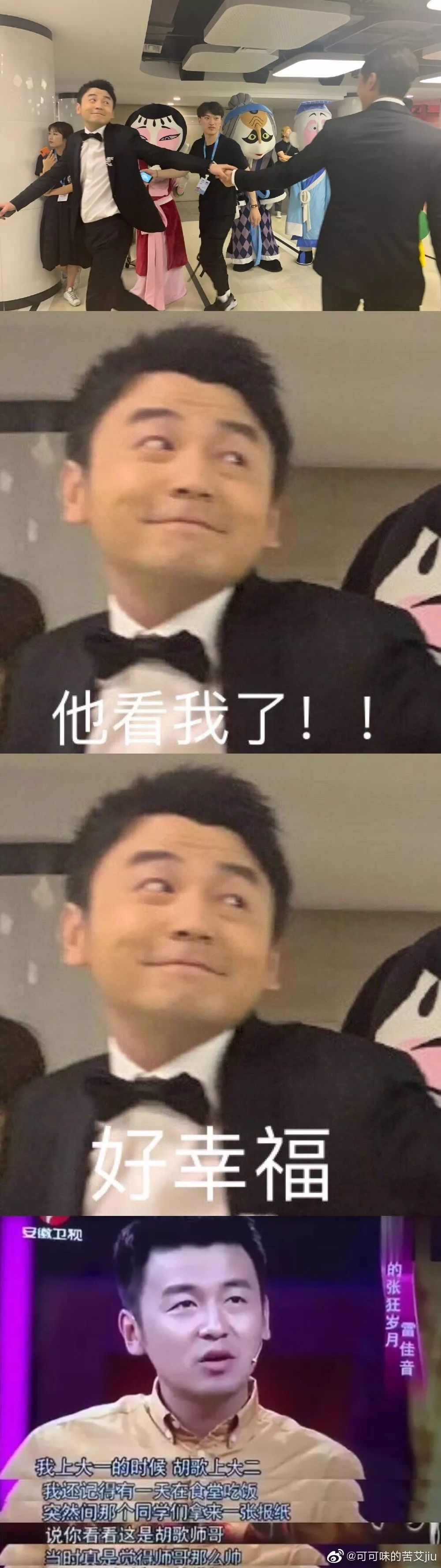 两人渊源颇深,雷佳音对胡歌可谓是“倾慕已久”,网友自发地将雷佳音的小眼神p成了表情包,还说看到胡歌的雷佳音“开心得头都大了”