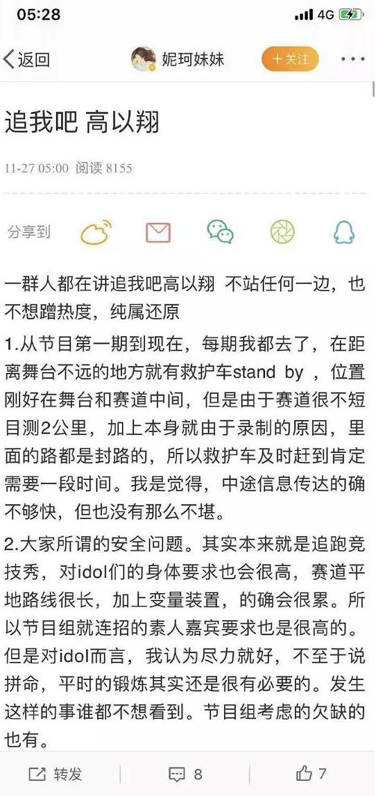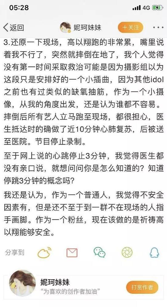 同时也有网友表示高以翔已经转危为安,目前正在医院休息。