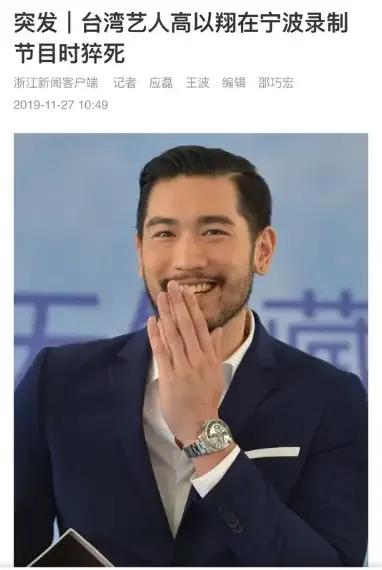 11点09分,据浙江新闻客户端证实,台湾艺人高以翔不幸离世。