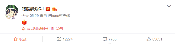 高以翔晕倒送医之后,此事也在各方大V及媒体的通报后才让消息流传开来,虽然浙江卫视工作人员在之后回应媒体时表示了“等我们,感谢”的字眼,但从5点多开始,随着某著名大V博主爆料称高以翔已猝死,外界才真正开始担忧了起来。