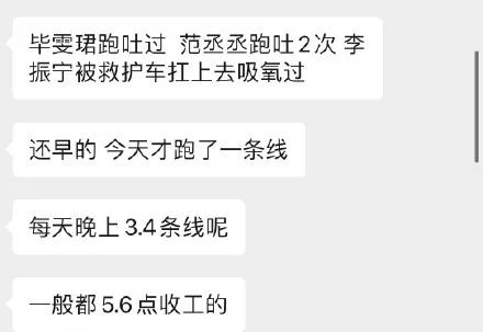有网友爆料,在《追我吧》这个节目里面,毕雯珺和范丞丞都跑吐过,范丞丞还在录制过程中跑吐过两次,李振宁也试过因缺氧被扛上救护车吸氧。而他们一般的深夜录制,凌晨5.6点才收工。