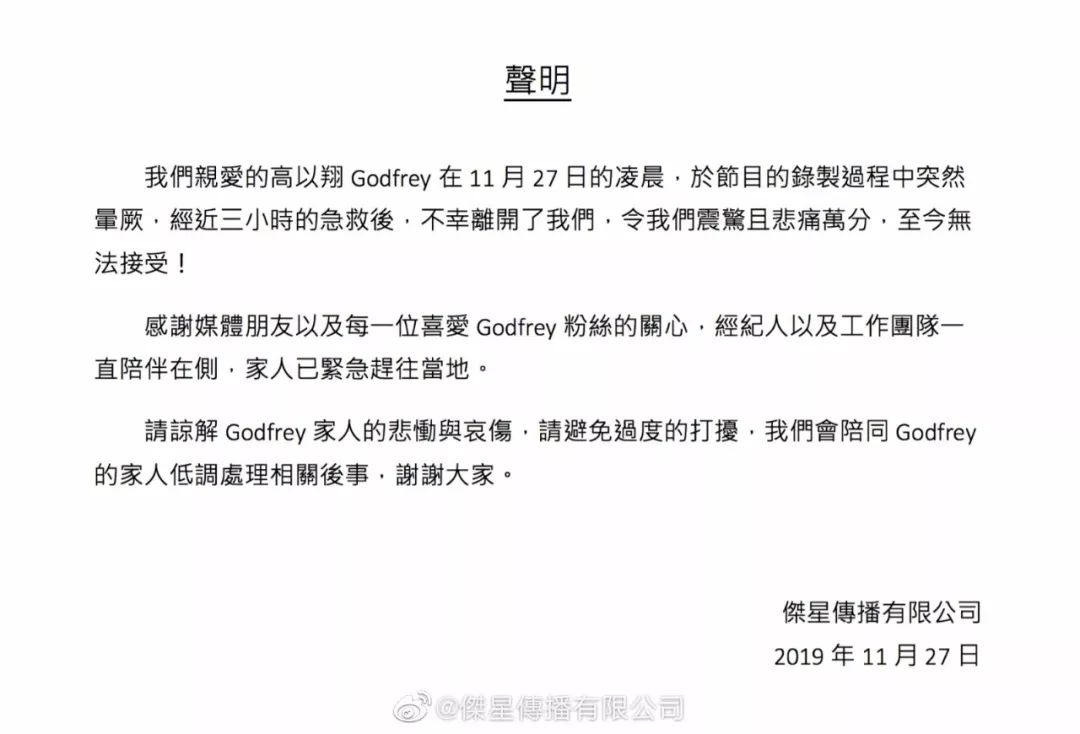 然而就是这样一个身材健硕的优质偶像却突然离我们而去,其经纪公司也在第一时间证实了消息。
