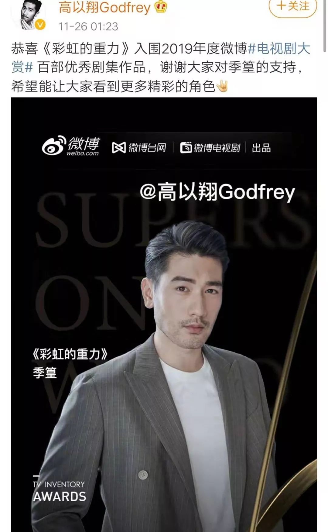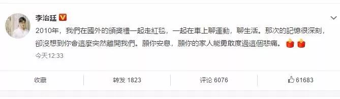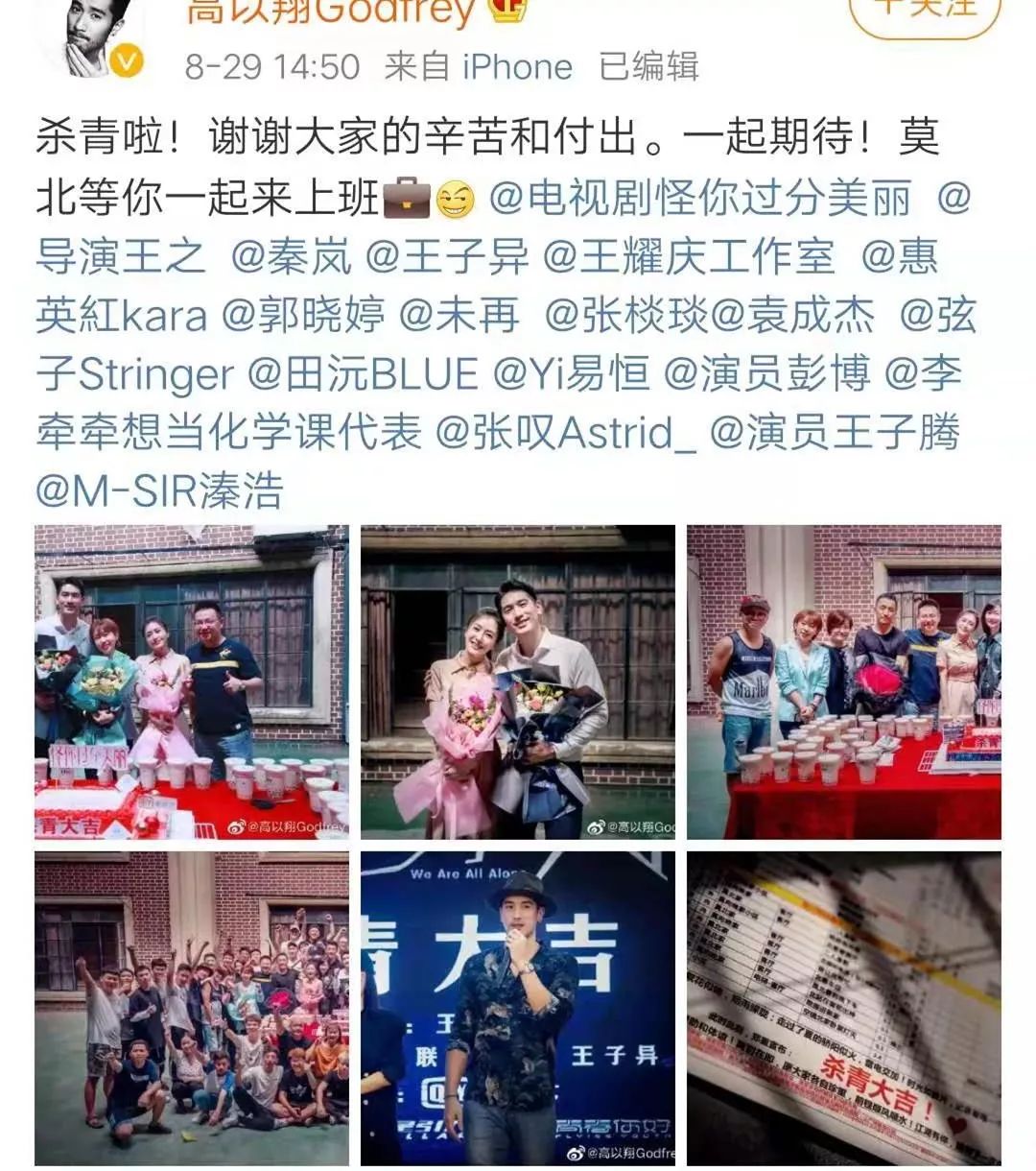 8月份他才刚刚杀青一部戏,和秦岚、王子异、惠英红、王庆耀合作的,这也可能是他最后的一部作品了。这是高以翔生前的最后一条微博,正像小S说的,他是个优质偶像,平时除了作品、拍戏很少有绯闻,微博里也除了运动就是作品,最后却以这样的方式和我们告别,真的觉得是不是天嫉英才,上天也缺这样的帅哥?