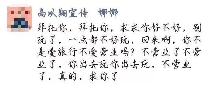 随后高以翔宣传的朋友圈被曝光,她写道:回来啦,你不是爱旅行不爱营业吗?不营业了,真的求你了!疑似证实消息属实。