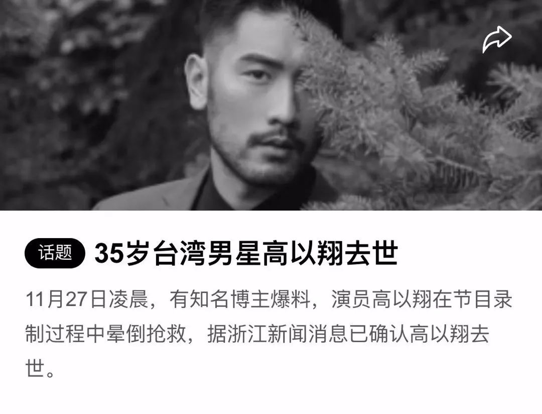 原标题:高以翔35岁猝死!4次入选全球百大帅哥!生前大喊“我不行了