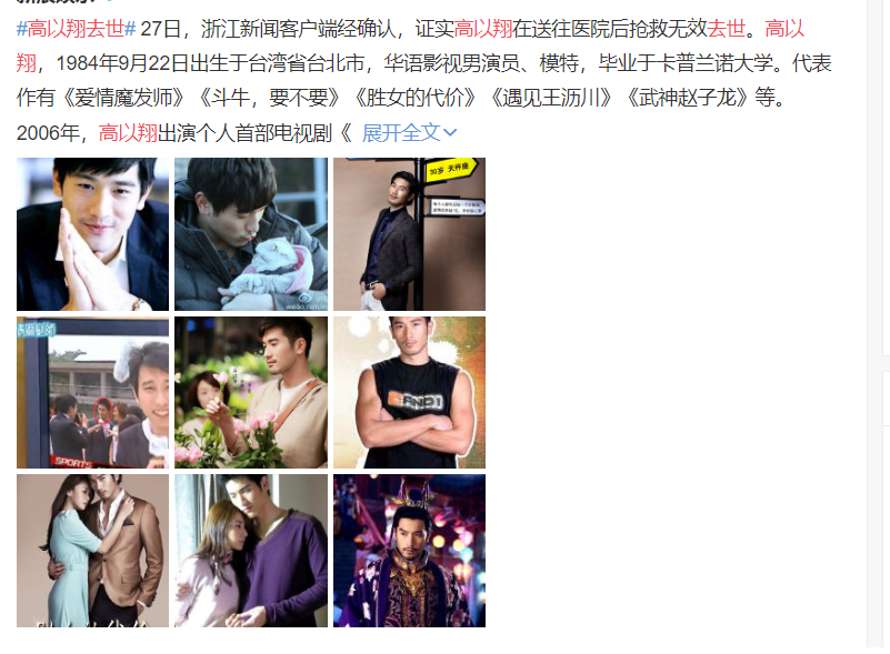 11月27日,一则高以翔猝死的消息引爆全网,事情的经过是因为高以翔在深夜录制浙江卫视的一档节目《追我吧》时突然晕倒,之后心脏骤停了好几分钟,经过了一番抢救之后高以翔还是没有好转,最后被救护车拉去医院抢救。