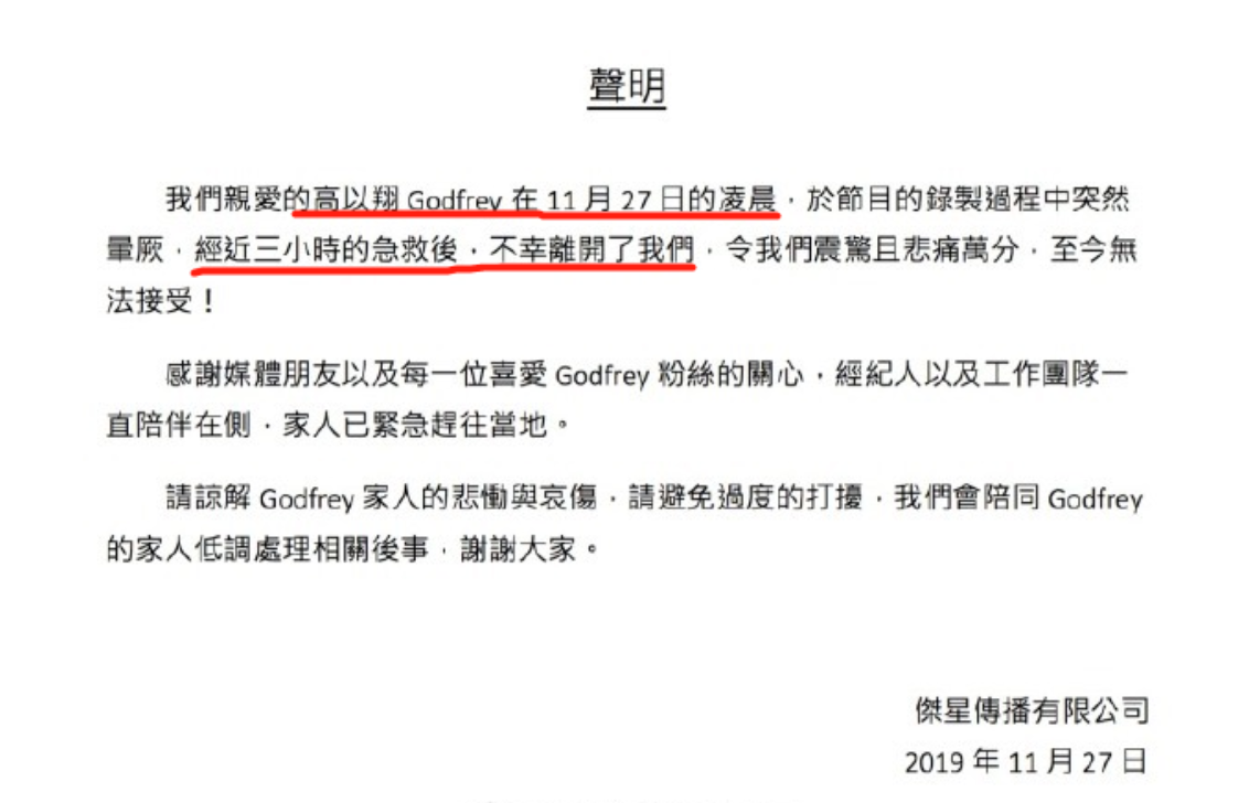 直到临近中午,官方媒体最终证实高以翔救治无效,已经离世。