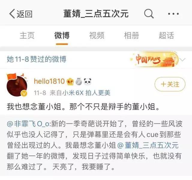 反观董婧,自那次事件过后,她不再关注关于《奇葩说》的任何内容,基本上微博都是自己的生活,基本上消失在观众视线里,只是曾点赞过网友关于那个事件的微博。