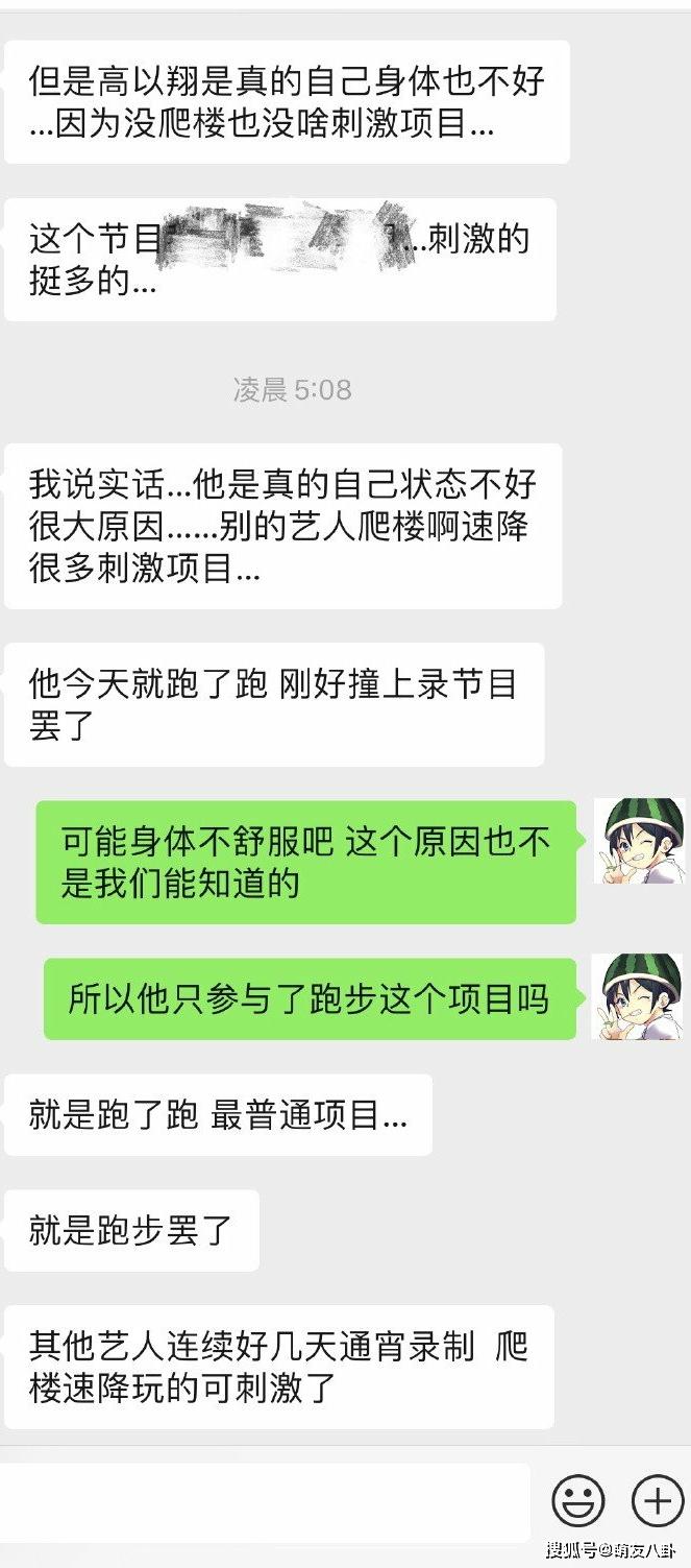 不过看到最后一句:“其他艺人连续好几天通宵录制,爬楼速降玩的可刺激了”就难免让人恼火,而且还是通宵。或许截图称高以翔身体情况可能不太好,可以理解,但演员始终还是要休息的啊。所以这挡夜间极限挑战类的节目,还是走点心吧。