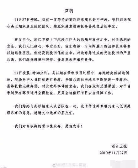 27日凌晨一则演员高以翔录制综艺节目《追我吧》时突发意外造成猝死的消息引爆了全网,《追我吧》节目自然被舆论放到了风口浪尖之上,经历过两个多小时的抢救高以翔最终没能够被抢救回来,许多网友对节目组提出了质疑。