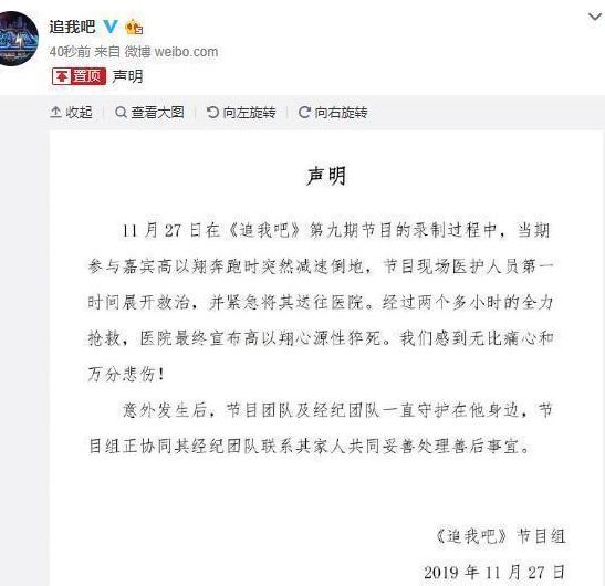 原标题:浙江卫视和《追我吧》声明回避高以翔猝死敏感问题,网友不