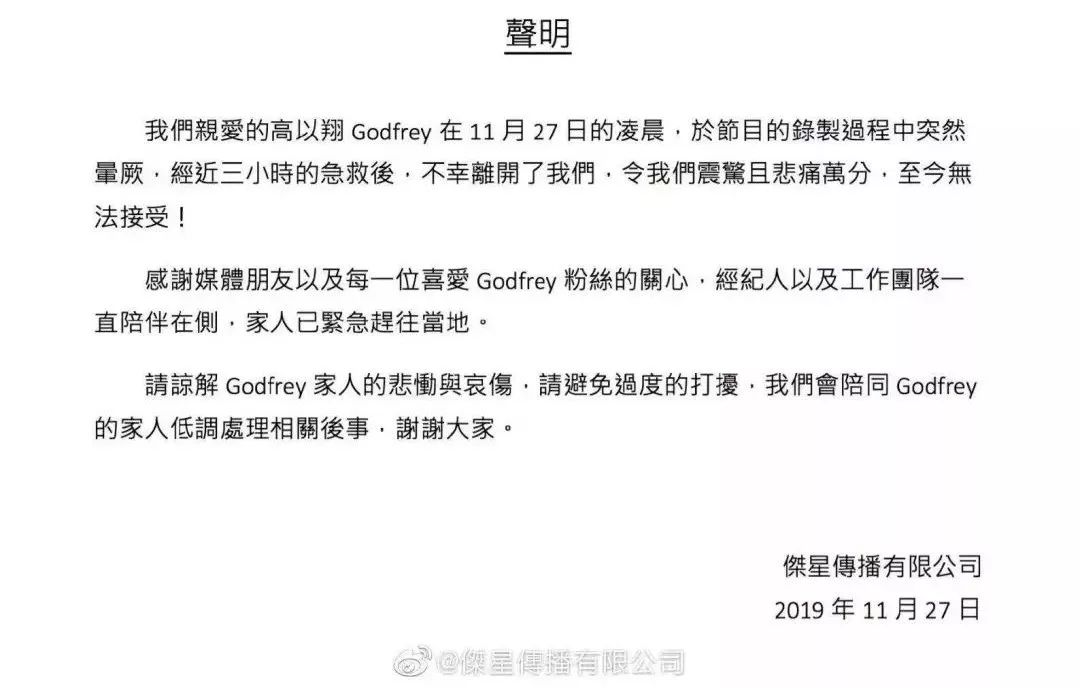 凌晨出的事故,据说人送到医院就已经不行了,浙江台却一直在想办法压热搜,实在压不下去了,最后出的声明里,也模棱两可,毫无诚意。