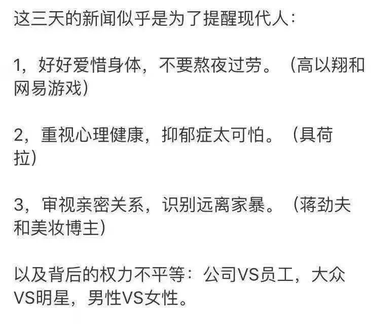 另一边,却是接二连三的,因为过度劳累,熬夜过度,一个接一个猝死、患病、压力过大自杀的年轻人。