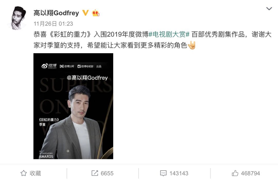 明明昨天凌晨一点多的时候,他还发了微博,庆祝自己的作品入围电视剧大赏优秀剧集。